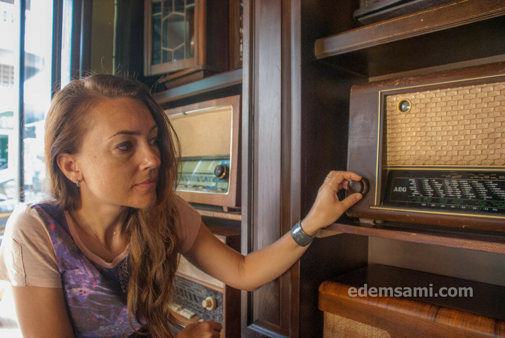 а, заглянув внутрь и обнаружив целую коллекцию старых магнитол и радиоприемников, удержаться от того, чтобы погрузиться в винтаж прошлого века, просто невозможно.