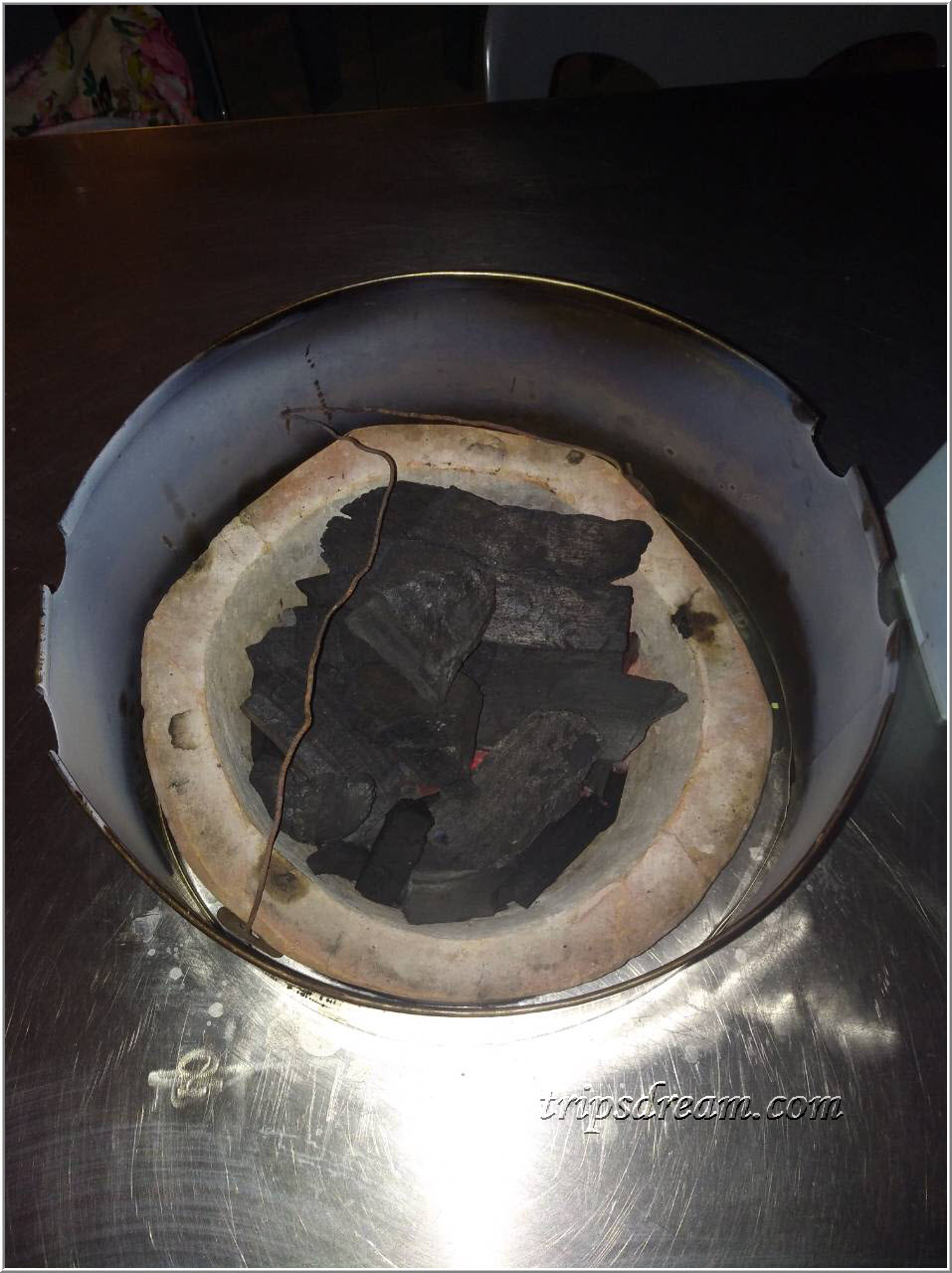 Центральный элемент каждого столика здесь – такой своеобразный очаг с углями: