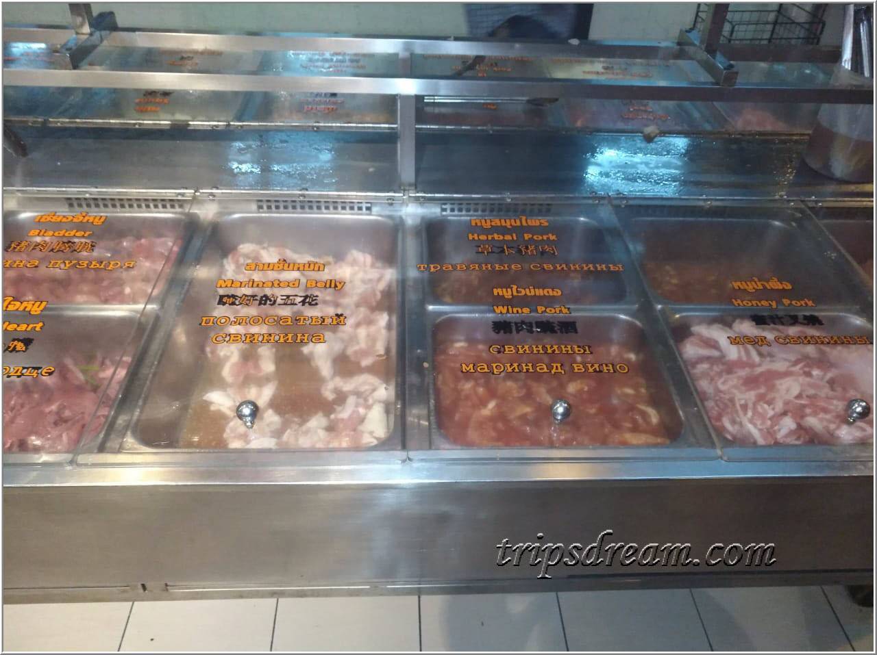 В крупных супермаркетах, таких как BigC или Tesco Lotus ассортимент провизии огромен. Кроме готовой еды (например, завтрак – жареное яйцо с рисом стоит 15 бат, порция супа или карри – 20 бат), можно приобрести интересные наборы для приготовления супов и прочих блюд. Сырую рыбу, мясо или морепродукты и вам могут там же почистить и приготовить. Наборы еды для самостоятельного приготовления стоят около 100 бат.