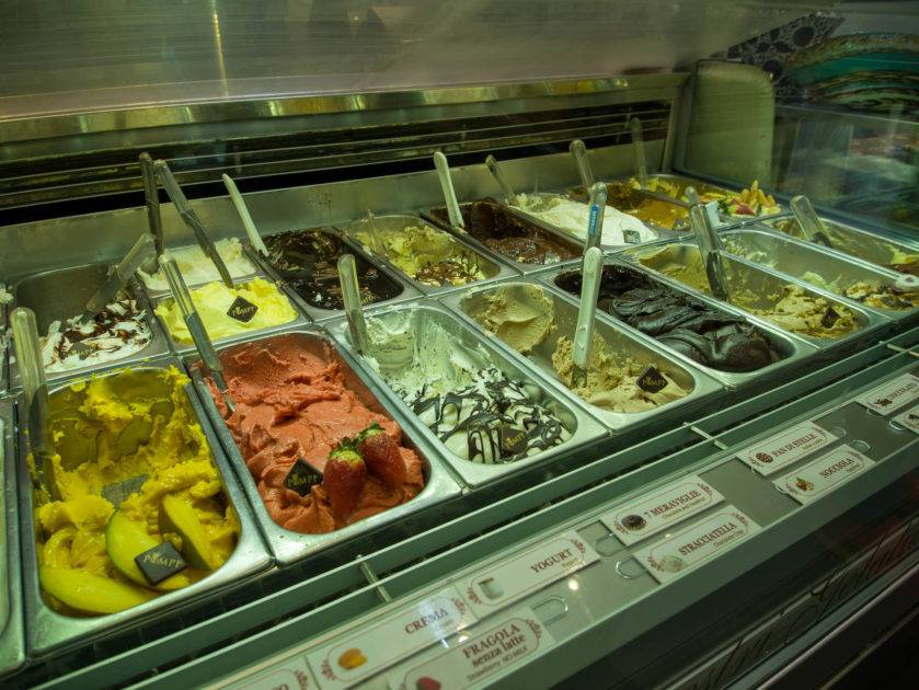 Раз уж заговорили о сладостях, то вспомним и про каноли. Их мы пробовали в Gelateria Pasticceria Ornelli и очень разочаровались. Мало того что сами каноли не поразили нас вкусом, а вафелька оказалась пережаренной, так еще и с нас списали лишних 3 евро.