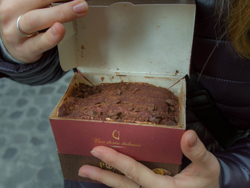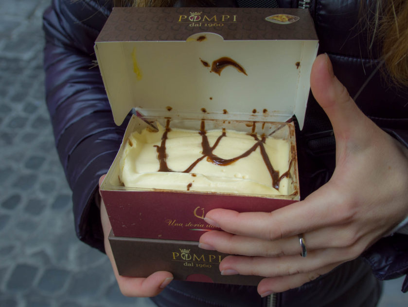 Все эти сладости мы покупали на вынос в Pompi. Сразу скажем, что не самый дешевый вариант, например тирамису и панна котта стоят по 4 евро, но они того стоят.