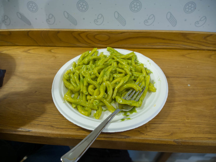 Первое: Pastificio Guerra — супердешевая паста за 4 евро в центре города недалеко от испанской лестницы. На выбор всего два варианта, так как приготовлена она заранее в большом объеме. Порции просто огромные, паста свежая и горячая, но соус простой.