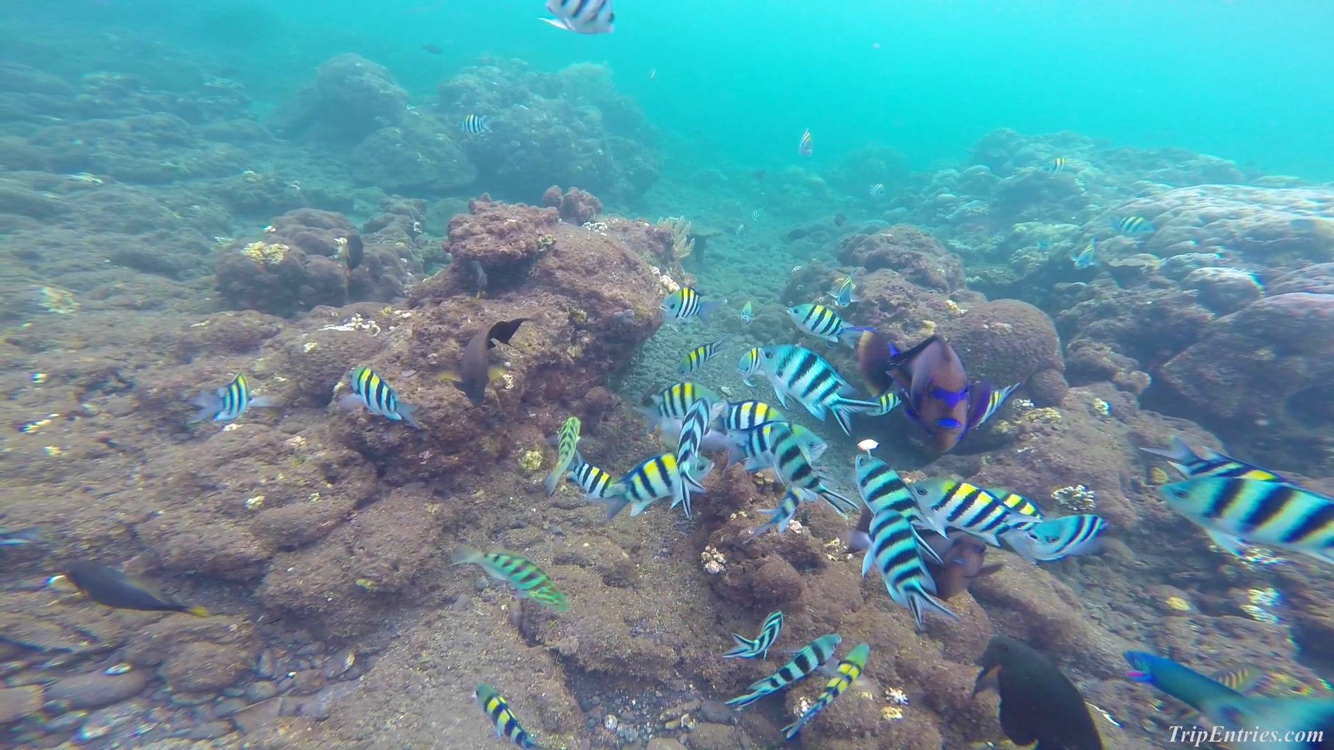 Снорклить все-таки лучше рано утром — проверили на себе. Уже в полдень в тех же местах значительно меньше рыбы, а яркие солнечные лучи только мешают их рассматривать.