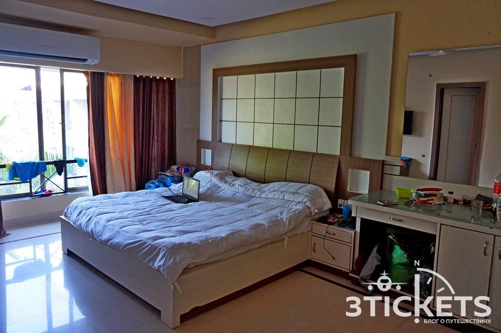 Потом мы разговорились с официантом одного пляжного кафе (он говорил по-русски), и он направил нас в один гостевой дом. Там мы нашли хозяина с хозяйкой, которые предложили нам номер за 600 рупий.