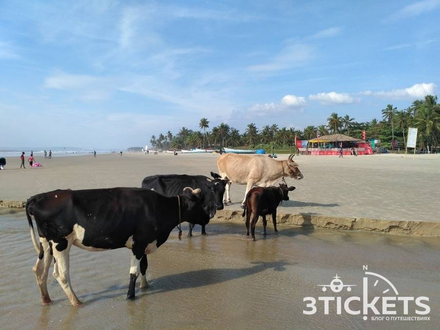 На пляже множество коров и собак, особенно в вечернее время. Но сам пляж вовсе не грязный: очень часто по пляжу проходят пляжные «дворники» и собирают весь мусор.