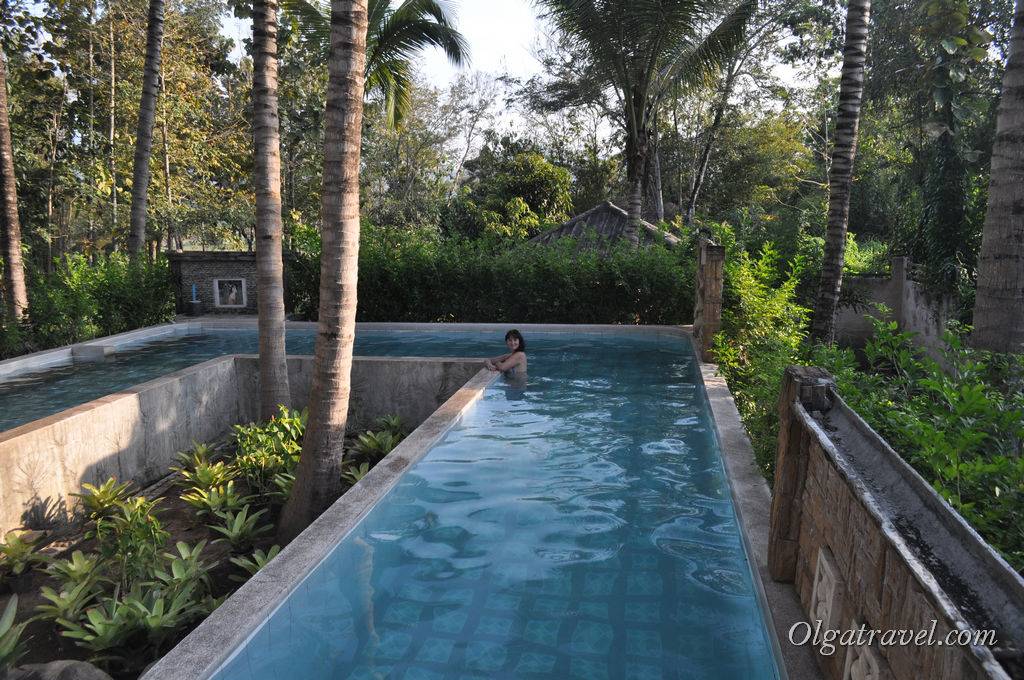 В другом конце территории отеля бассейн с холодной водой и видом на рисовые поля. Надо сказать, что это как то не продумано: удобнее, когда бассейны с холодной и горячей водой рядом, что бы из одного быстро перебегать в другой