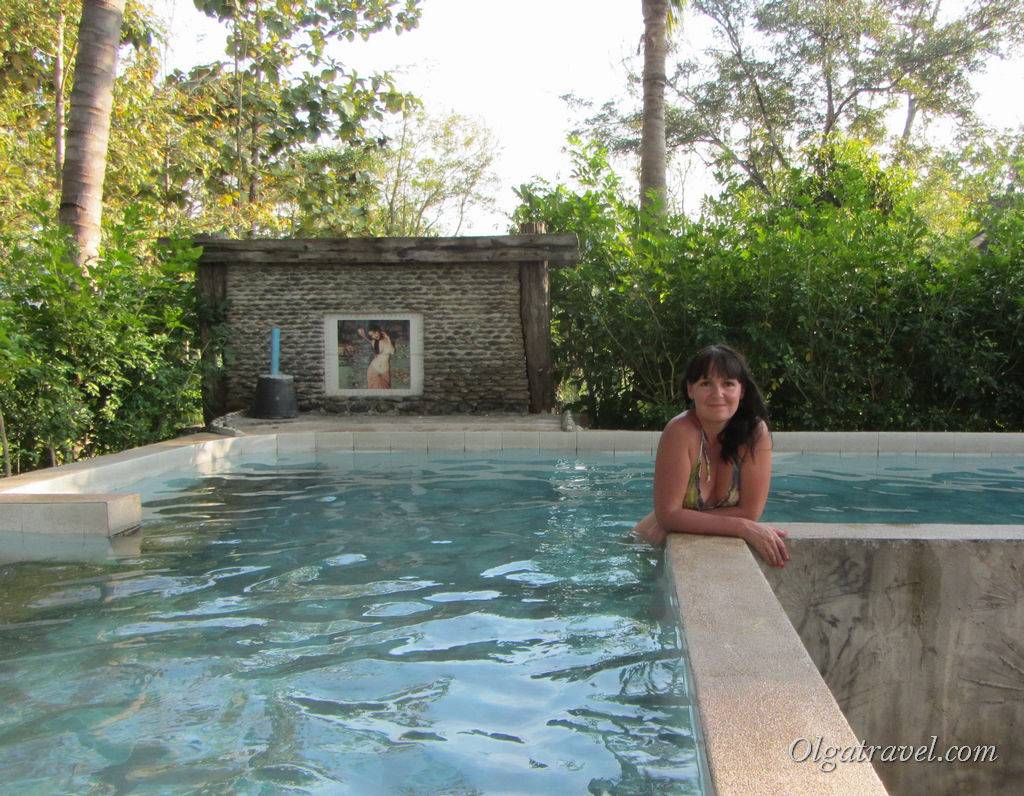 Мы посещали Pai Hot Spring and Spa два раза: один раз утром — были на территории почти одни, второй раз вечером. Вечером кроме нас в бассейне грелись еще два иностранца.