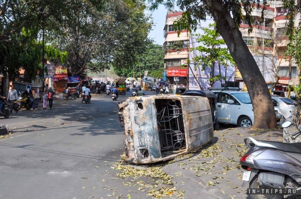 Район холма Парвати мне показался неуютным и даже криминальным, но скорей всего это произошло из-за общей разрухи, которая в этом районе на каждом шагу. Перевернутые и сожженые автомобили, целый город трущеб, кругосветная грязь и бродячие козы навивали грусть. Не рекомендую гулять по этому району вечером.
