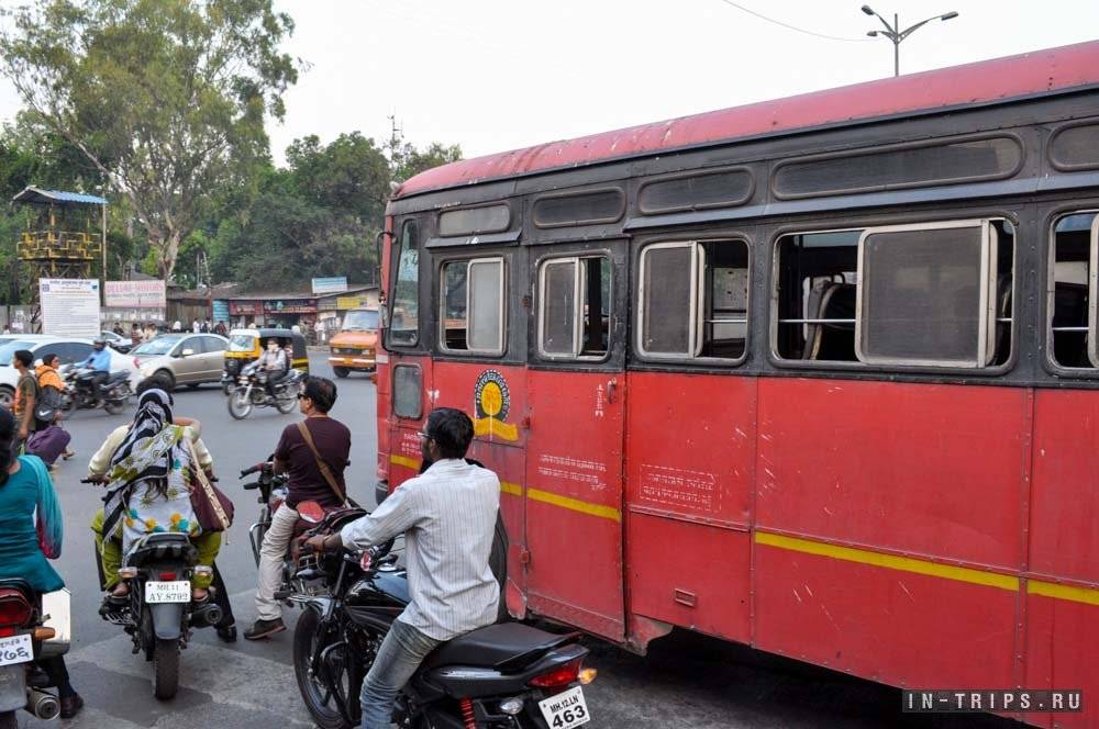 Оказывается, в Пуне не все остановки являются равнозначными, на некоторых из них, общественный транспорт может и вовсе не останавоиваться. Проблема решилась очень просто, я дотопал до перекрестка со светофором и там подловил нужный мне маршрут. Никакой проблемы войти или выйти в автобус нет, ведь двери в нем не закрываются.