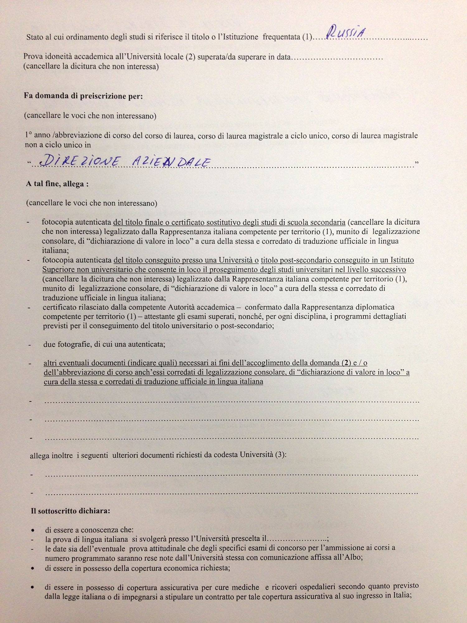 Русскоязычные документы, которые необходимо представить префектуре при обращении, следует заранее перевести на итальянский язык, а перевод должным образом заверить. Кроме этого, заявитель должен пройти собеседование на предмет знания итальянского языка.