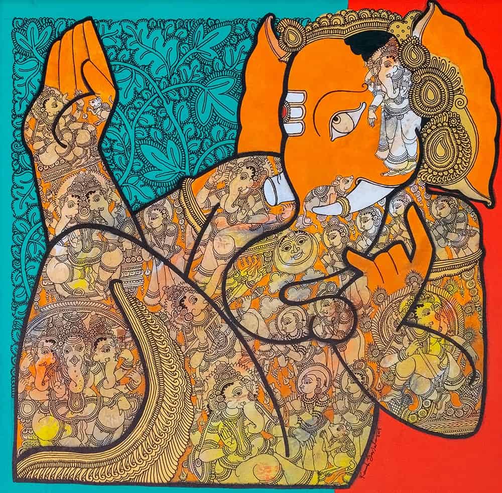- По другой легенде, Шива собственноручно сорвал голову сына с плеч, чем очень разгневал Парвати и, желая загладить собственную вину, прирастил голову первого попавшегося животного к телу Ганеши.