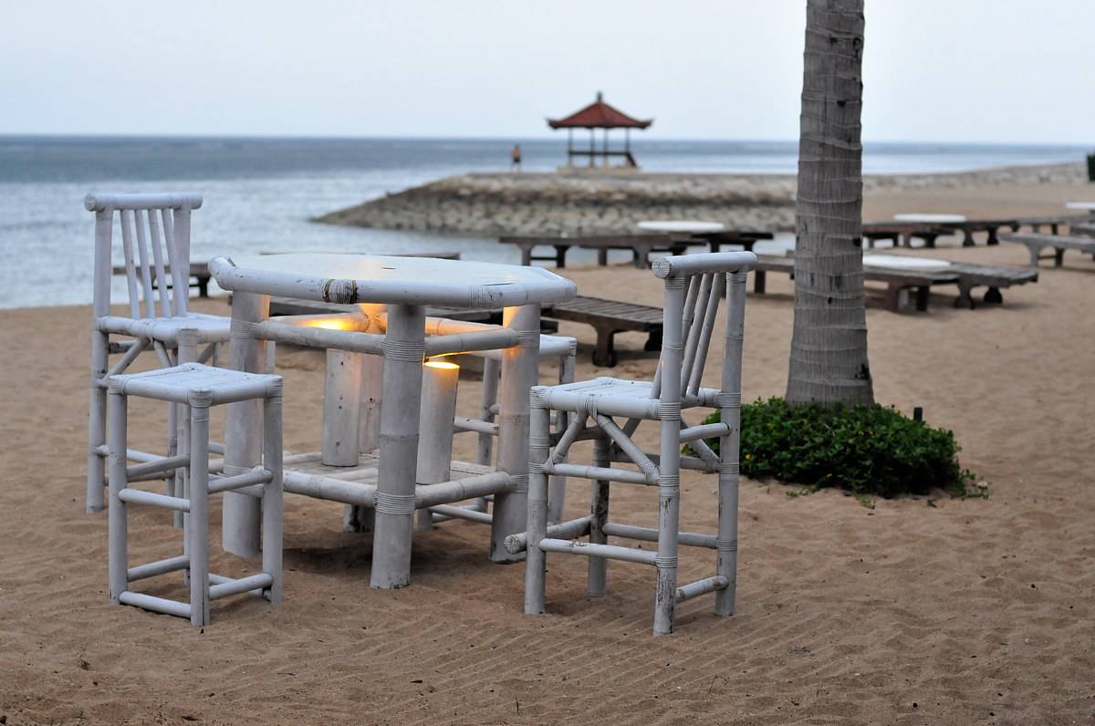 Отличие Санура от остальных мест на Бали – тихое море, здесь нет волн. Минусом можно считать сильный отлив после обеда, поэтому купательные процедуры планируем на утренние часы – это отлично гармонировало с нашим распорядком. Обеденное время лучше проводить в тени, а лучший вечер на Бали – это столик в ресторане с видом на море.
