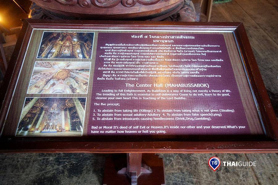 Центральный зал посвящен четырем благородным истинам, которые Будда открыл невеждам. Этими истинами являются: любовь, доброта, самопожертвование и помощь другим людям (радость от разделения благ).