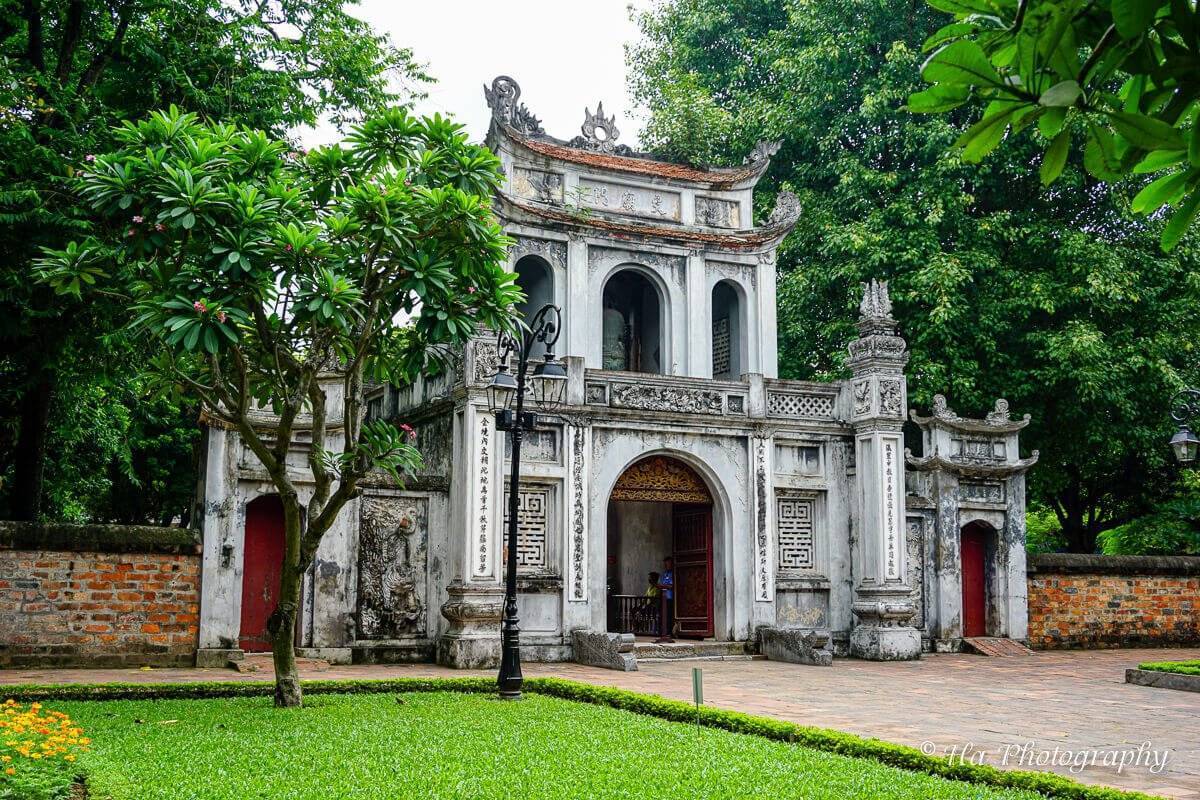 Our trip started at Van Mieu Gate, a two-story gate architecture with three doors. The upper floor has three letters that indicate the name “Van Mieu Mon” in ancient Chinese characters.