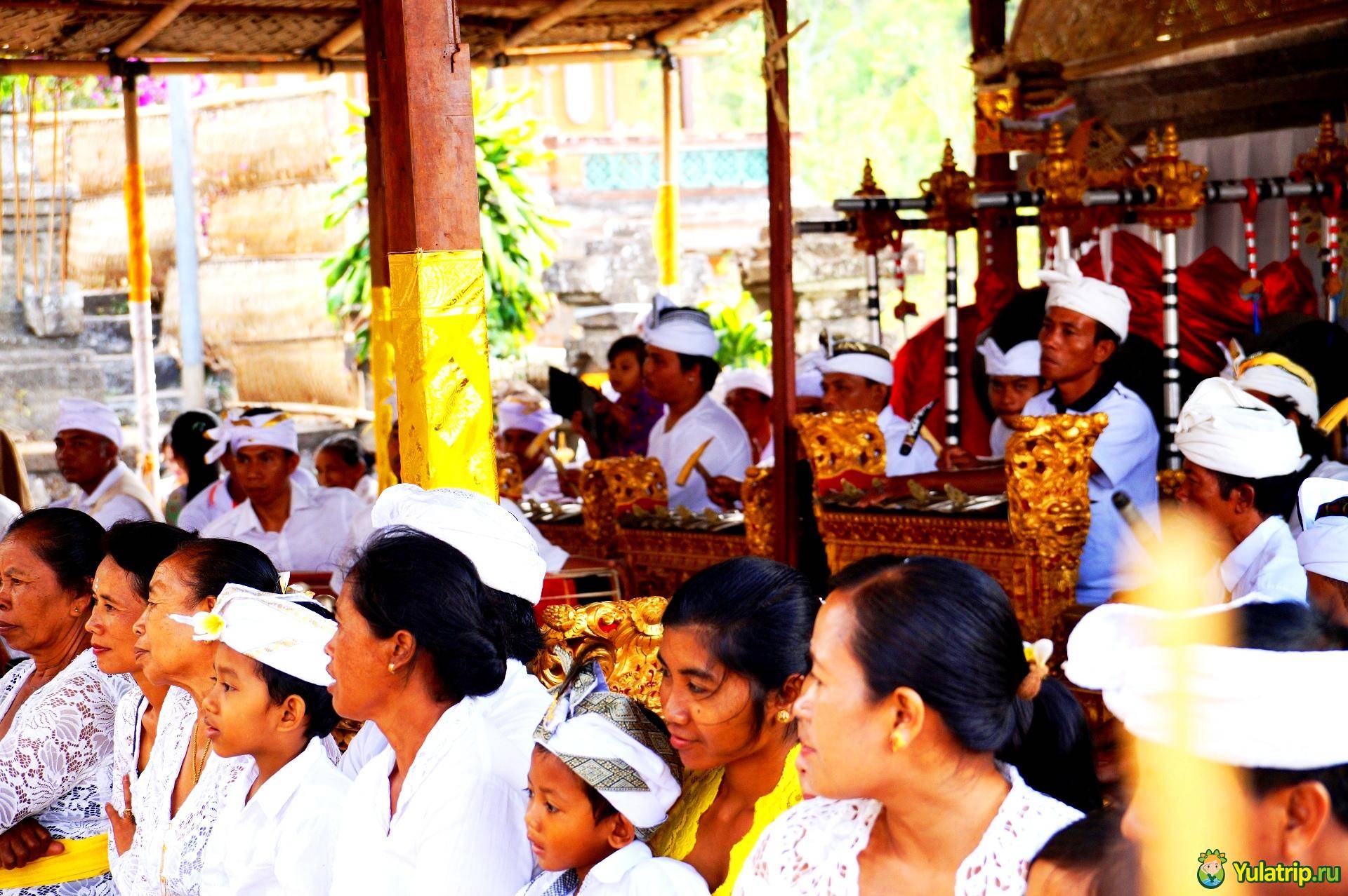 Итак, мы начали посещение храма с гидом, который на английском языке рассказал нам историю храма, показал, где и как проходят церемонии. Он провел нас по всему храму, разрешил нам постоять у входа и посмотреть на саму церемонию. Я очень обрадовалась, так как давно уже хотела посмотреть своими глазами, что же там происходит, за большими стенами индуистских храмов. Везде на острове вход в индуистские храмы разрешен только для местных. Туристов пускают только на территорию храма, внутрь храмов входить запрещено. И знаете, часто во время индуистский церемоний слышны такие страшные звуки, что сердце в пятки уходит. Они кричат, рычат, орут. Хотя звуки красивой мелодии тоже слышны. Любопытство переполняло меня, что же там происходит. И вот именно в самом главном храме острова — Бесаких, наконец, мы увидели часть происходящего на индуистской церемонии. Что же мы увидели?