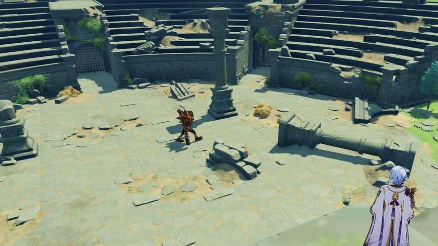 Все начинающие путешественники, придя в Храм Тысячи ветров, неминуемо столкнуться с “мини боссом” — Стражем руин. Он разгуливает по центральной части амфитеатра.