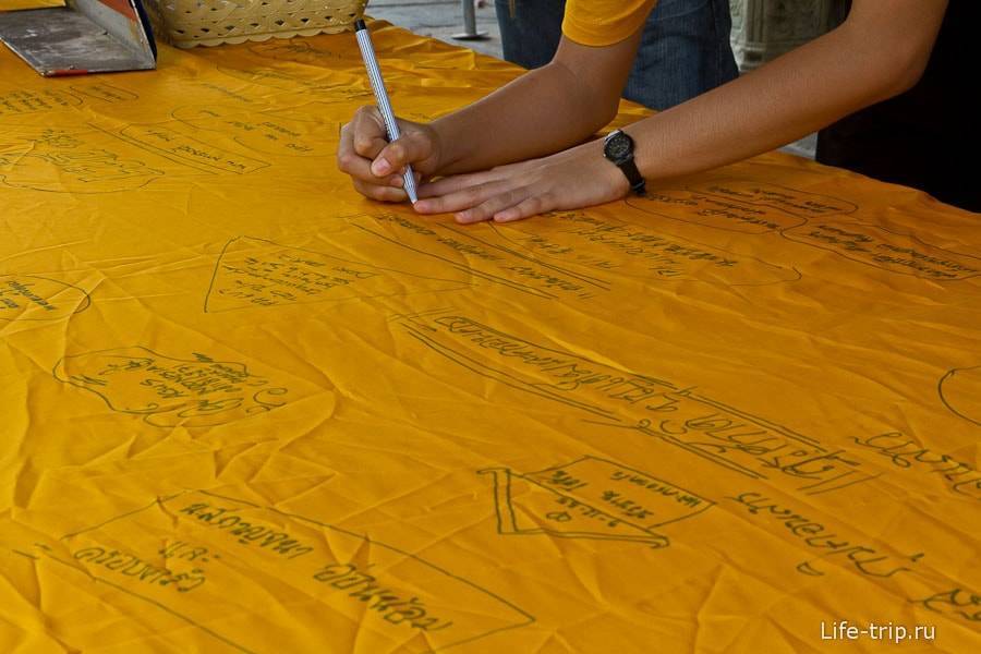 Свои пожертвования миряне-буддисты делают с радостью, они искренне считают, что добрые дела улучшают карму и приближают к просветлению. Король и его помощники вручают монахам новую одежду и участвуют вместе со всеми в праздничной службе.