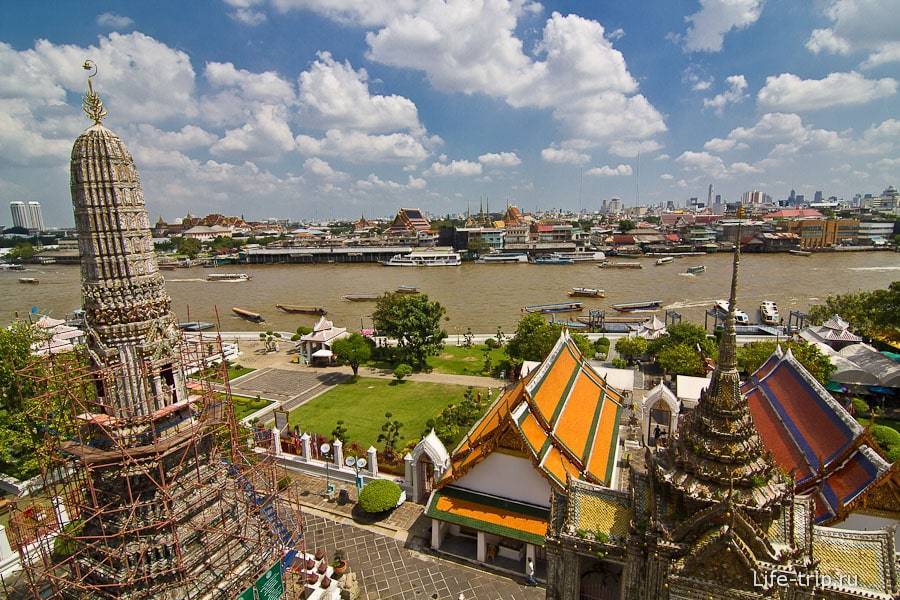Тем временем мы поднялись на одну из площадок храма, видно Чао Прайю: