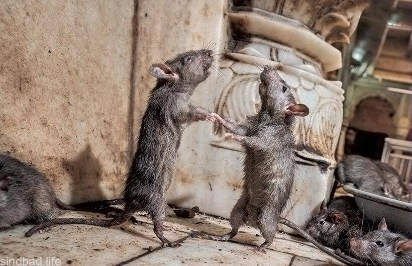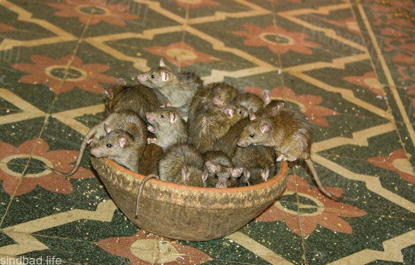 Священные крысы называются «каббас» и требуют к себе особого почтения. Они бегают повсюду и часто залазят на посетителей. Если животное окажется случайно убитым паломником, то ему придется уплатить штраф серебром или золотом. Чтобы умилостивить божество, необходимо передать священнослужителям в целях искупления греха слиток, вес которого равен весу убиенного грызуна.