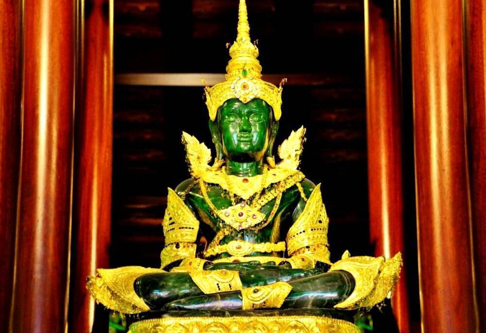 Статуя Изумрудного Будды выточена из нефрита, название получила из-за насыщенного цвета материала, напоминающего изумруд.