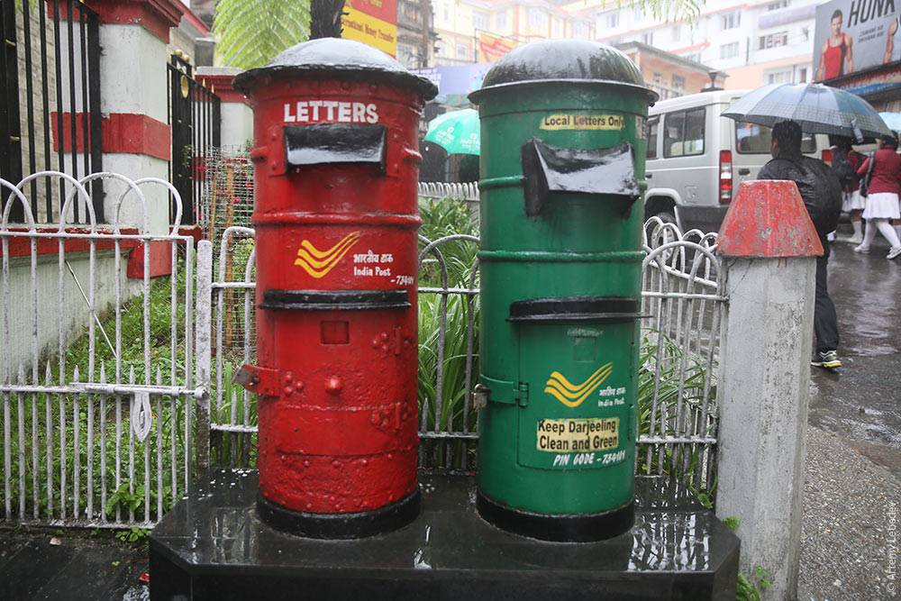 Впервые встретил зеленый почтовый ящик в Индии. Для почты по штату.