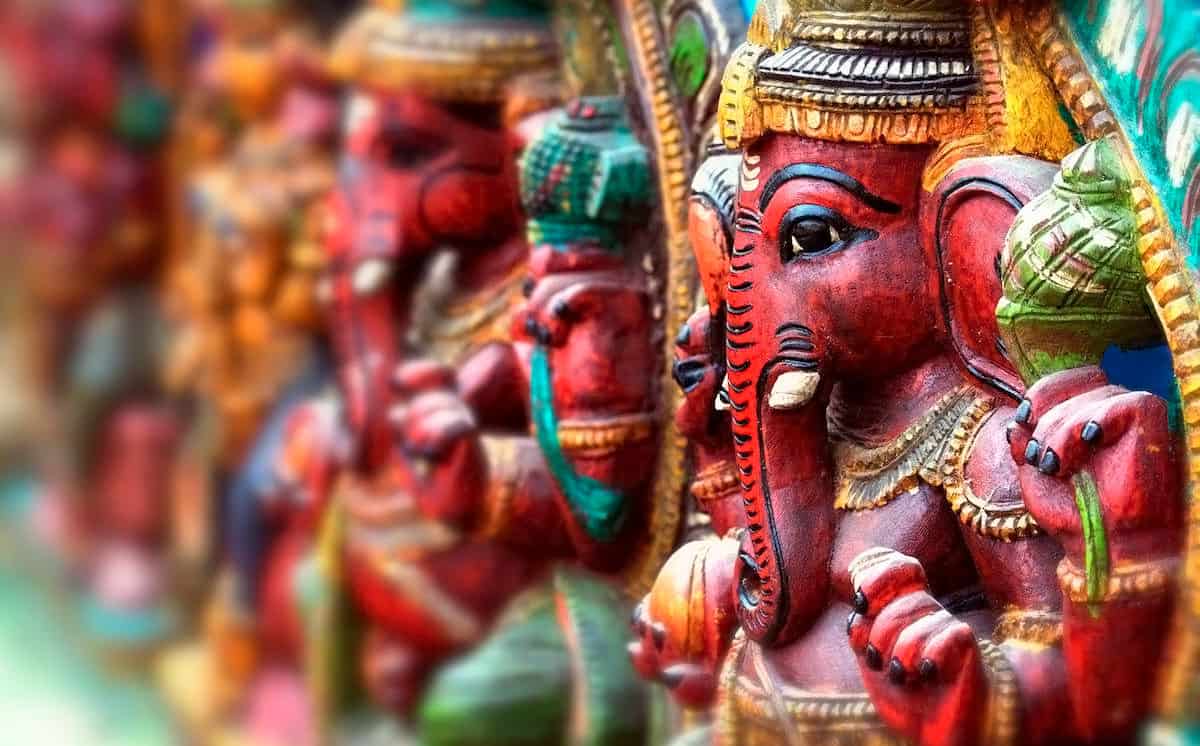 - Ганеша — бог, символизирующий мудрость и благополучие в индуизме. Имеет вид существа с человеческим туловищем и головой слона с одним бивнем, может иметь от 2 до 32 рук.