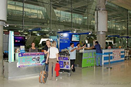 В Москве я распечатал ваучер. По прилету в Бангкок я спустился по эскалатору вниз. Автобусная касса (направление на Паттайю и Хуахин) находится около 8-го выхода (есть указатели).