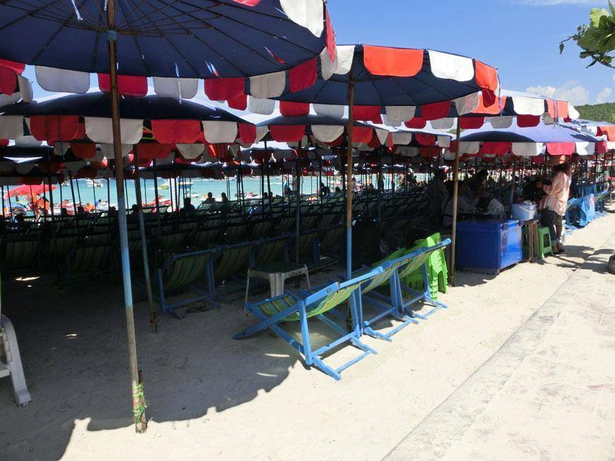 Пляж на Ко Лан. Стоимость лежака на первой линии от 75 до 100 бат