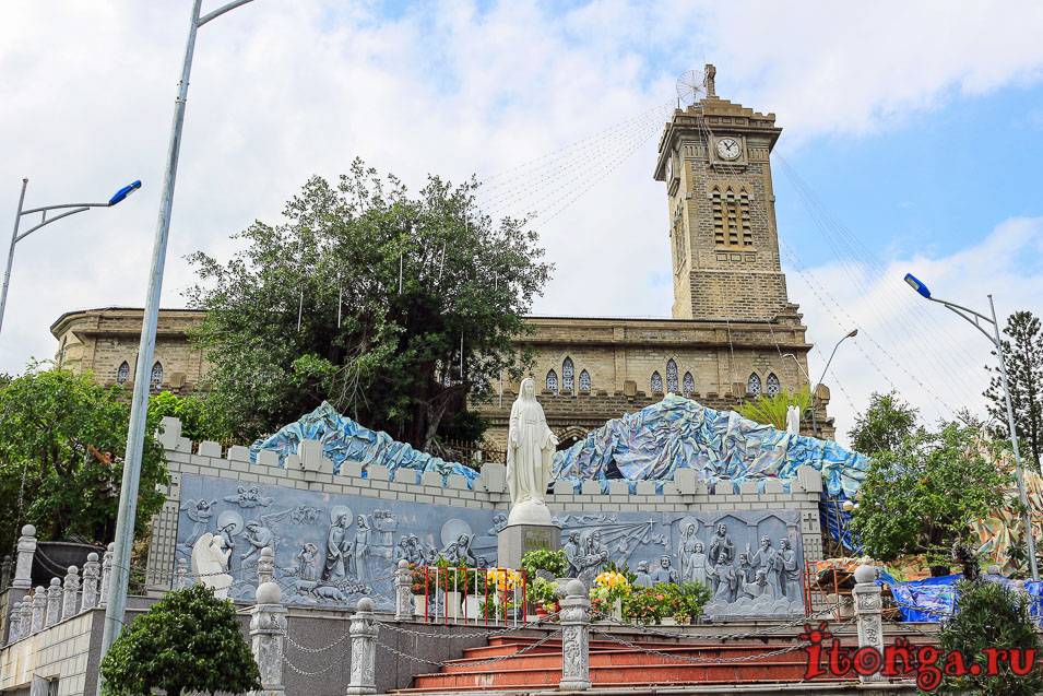 Католический собор в Нячанге благодаря своему доминантному расположению действительно привлекает внимание туристов и способен удивить каждого, кто не ожидал увидеть островок христианства посреди преобладающего в Индокитае буддизма. Попробуем вкратце рассмотреть, чем же в основном удивляет собор русскоязычных туристов