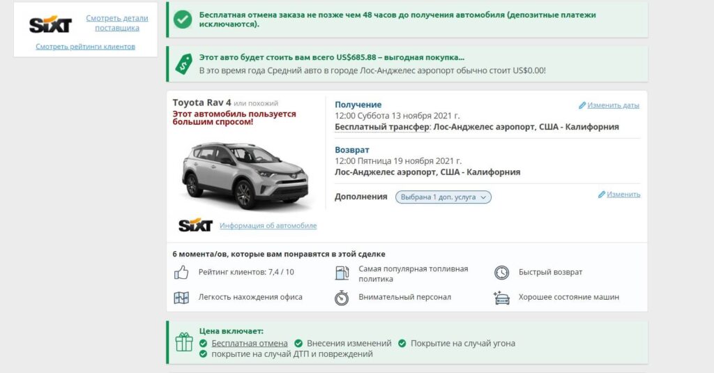 В целом не важно, если вы хотите арендовать автомобиль в Нью-Йорке, в Лос-Анджелесе, в Вашингтоне, в Далласе или любом другом городе США. Процесс одинаковый, поэтому не смущайтесь, что далее в примере я рассматриваю аренду авто в Лос-Анджелесе через мой любимый сервис