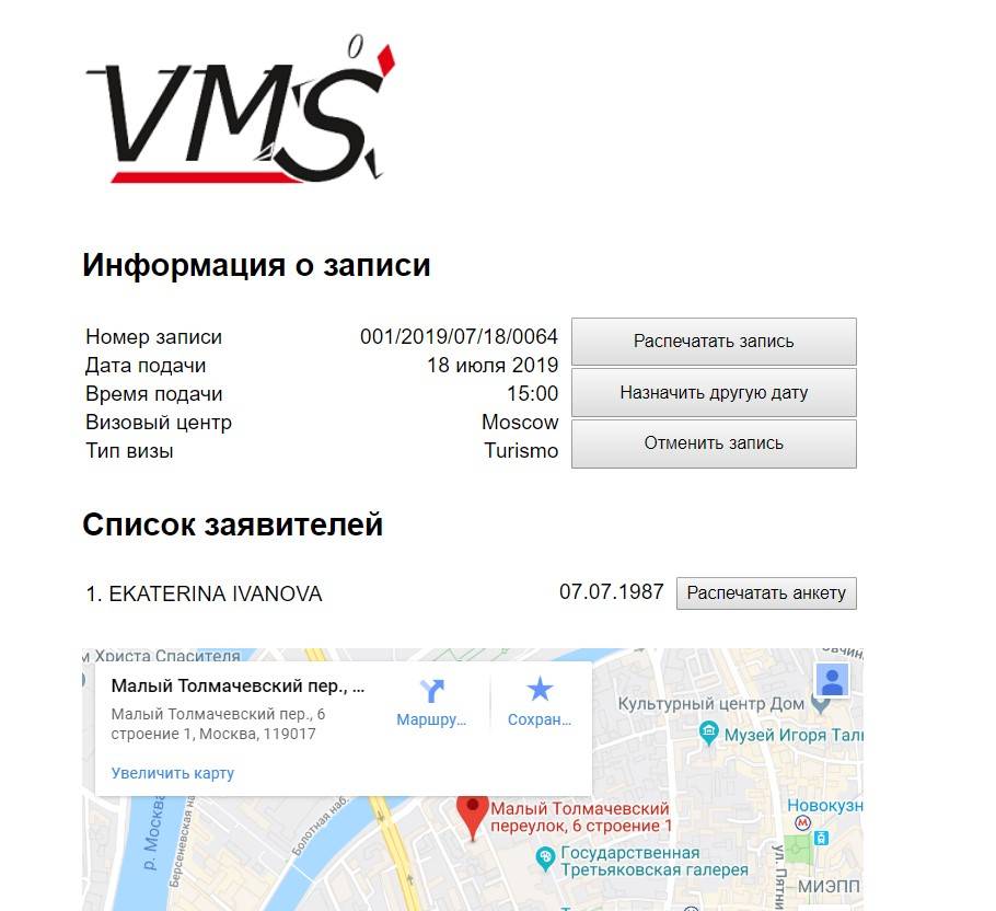 После создания записи вы должны распечатать анкету и подать ее вместе с другими документами. Примерно за три-семь дней до визита вам нужно будет подтвердить визит в своем аккаунте, чтобы запись не была отменена.