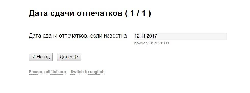 Если вы уже сдавали биометрию (отпечатки пальцев), укажите дату.