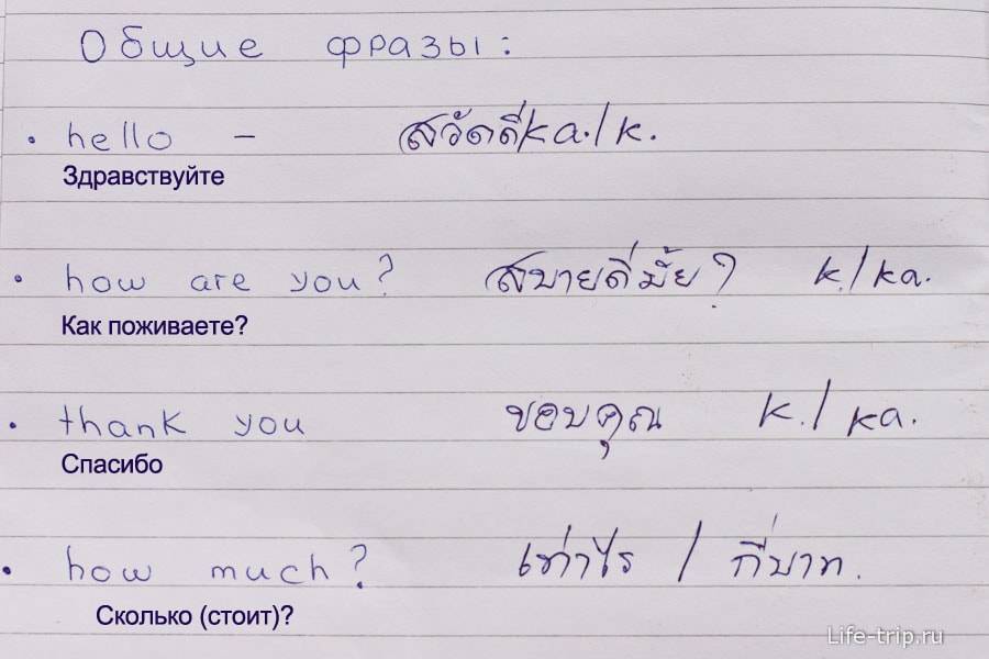 | Куда вы хотите, чтобы мы пошли? | Кхун йа: к тя пай дуай кан тхи: най май кхрап(кха) | คุณอยากจะไปด้วยกันที่ไหนไหม ครับ(ค่ะ) |