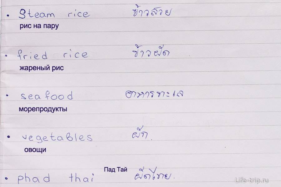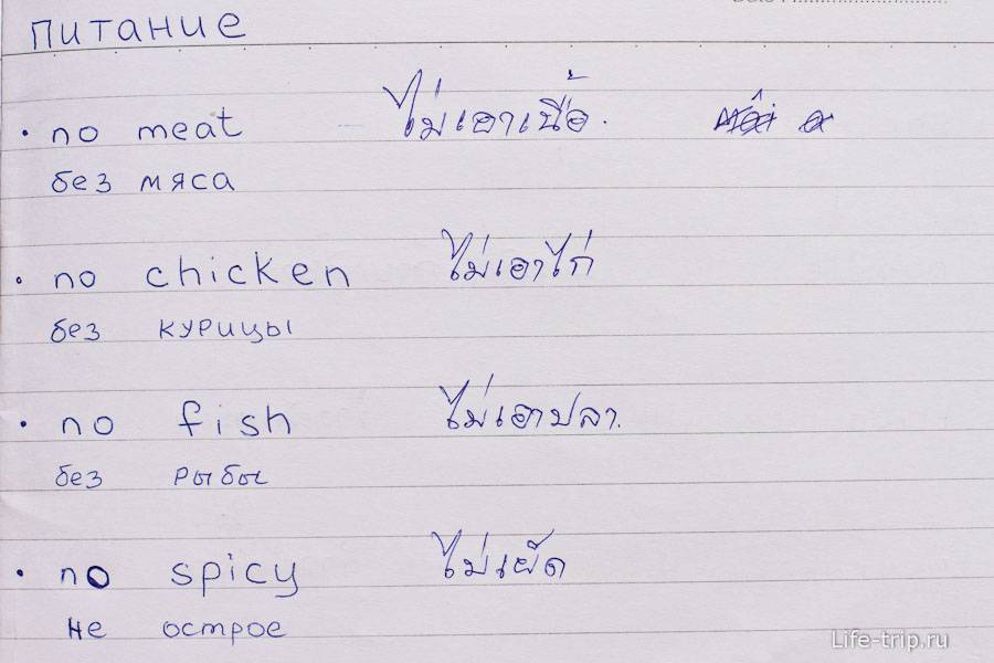 | Без специй (не остро) | Кхо: май пет кхрап(кха) | ขอไม่เผ็ด ครับ(ค่ะ) |