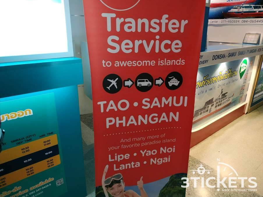 Если хотите купить билет на паром до Самуй в аэропорту Сураттани самостоятельно (например, хотите переночевать в городе и выдвинуться на остров на следующий день), то при покупке трансфера на сайте AirAsia выбирайте пункт назначения Surat Thani. Разница в стоимости таких билетов — 6 долларов. Покупать билет на медленный паром на аэровокзале самостоятельно будет чуть дороже — около 13 долларов.