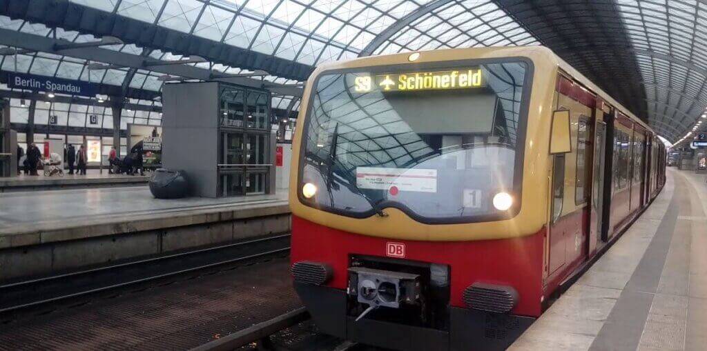 Электричка S9 курсирует по маршруту Flughafen BER T1-2 — Flughafen BER T5 — S Schöneweide — S Treptower Park — Berlin Hauptbahnhof (Центральный вокзал) — S Westkreuz — S Spandau (вокзал).