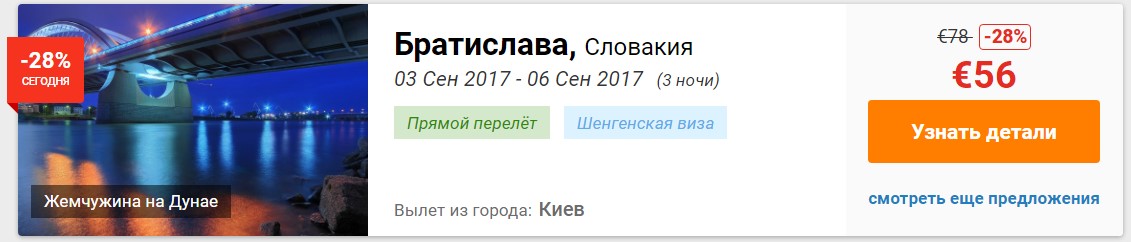 Еще один способ дешево путешествовать по Европе – смотреть рейсы не только в основной аэропорт, но и в близлежащие. К примеру, перелет из Киева в Вену стоит обычно €140-180, а в Братиславу – в несколько раз дешевле. И далеко не все знают о том, что из Братиславы в Вену можно добраться на автобусе за час и примерно €10: