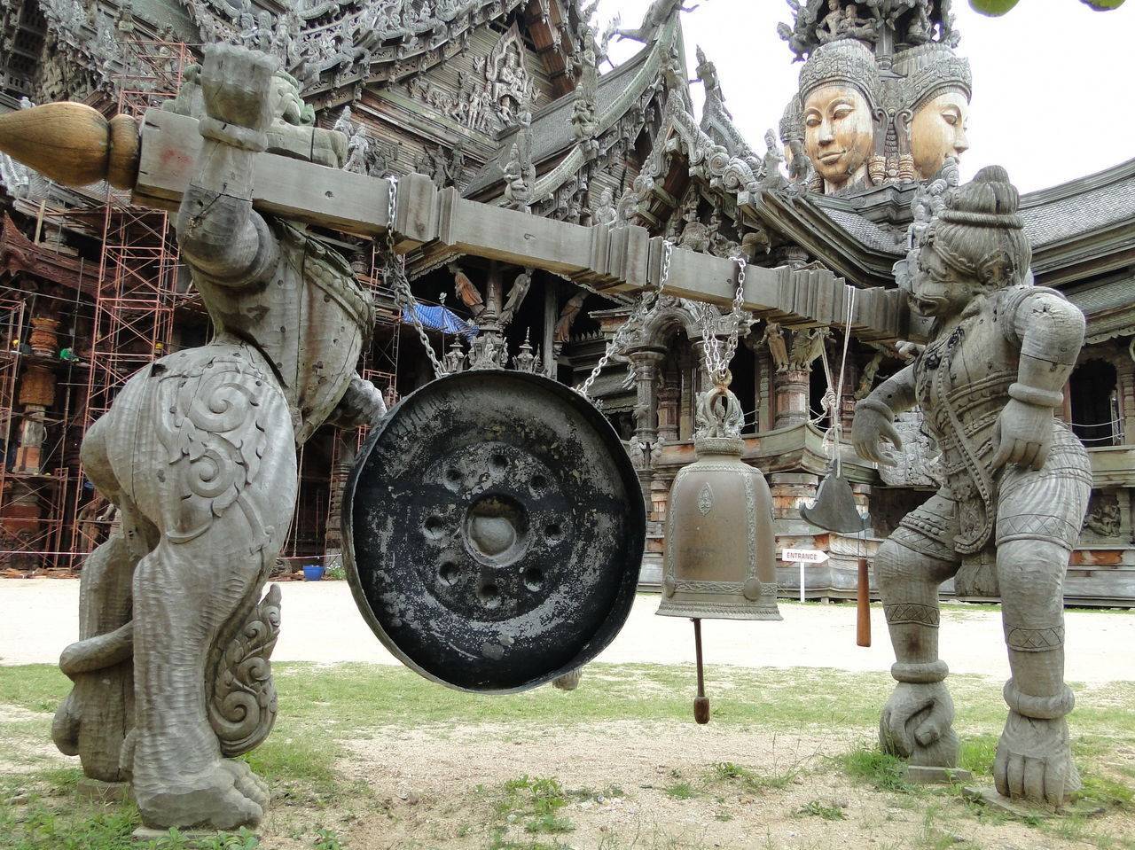 На севере Паттайи на живописном берегу Сиамского залива расположен один из самых необычных храмов мира — Храм Истины (или Святилище Истины). Сам храм и внутреннее убранство — все выполнено из дерева, но при этом вы не найдете ни одного металлического гвоздя. Высота постройки — примерно 105 метров, и кажется, что шпиль храма вот-вот коснется неба. Таким образом, Храм Истины (Sanctuary of Truth) — самое высокое в мире деревянное сооружение, построенное без единого гвоздя.