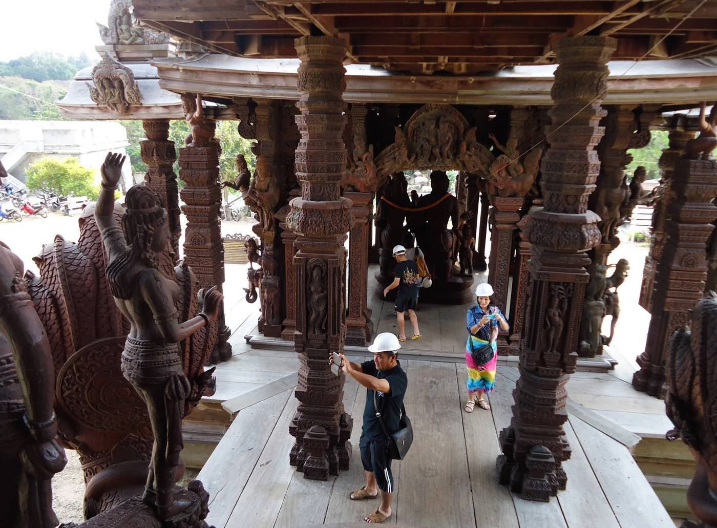 Храм Истины выглядит как большой музей деревянной архитектуры и резьбы по дереву, но все же это действующий храм, поэтому находиться в нем необходимо в подобающей одежде (прикрытые локти и колени). На входе в храм женщины могут взять в аренду парео. Также на входе всем выдают каски, так как в храме идут строительные работы.