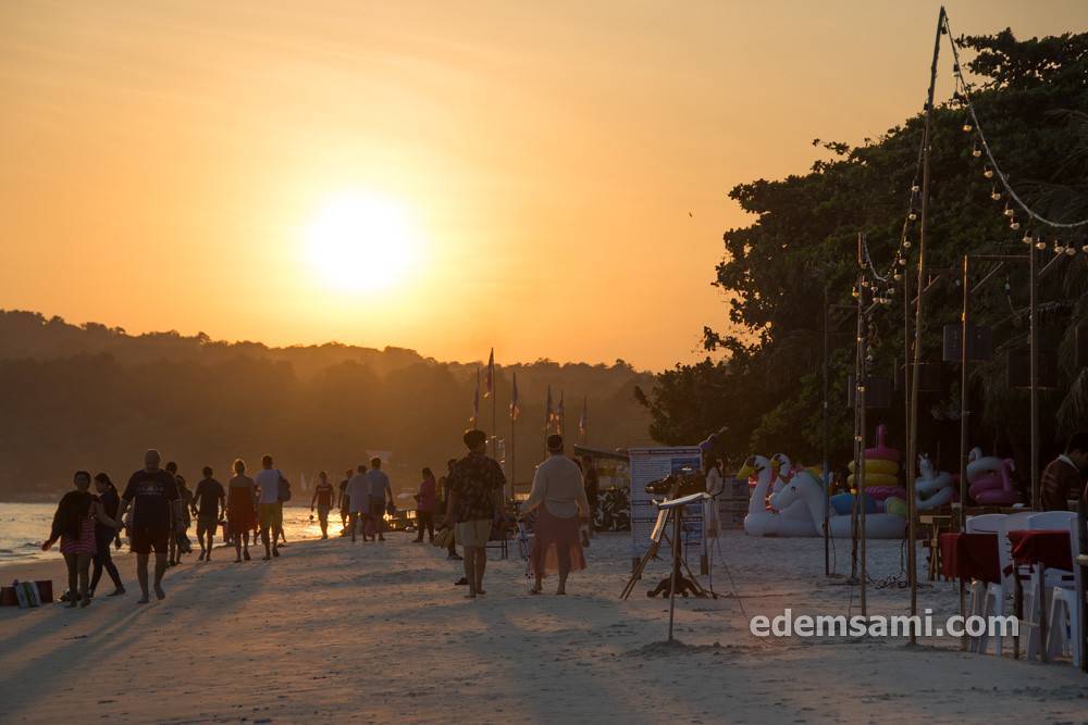 После 18.00 каждый ресторан выставляет столики у пляжа, а сам пляж становится большой пешеходной улицей. Все либо гуляют, либо ужинают при свечах. У многих ресторанов устраивают огненные шоу, но красивые шоу проходят в выходные (с субботы на воскресенье), т.к. больше всего туристов, в остальные же дни представление может быть весьма посредственное. Да и, по правде сказать, чего-то феерического там ждать не стоит, но развлечься очень даже можно.