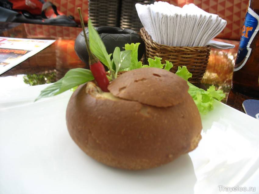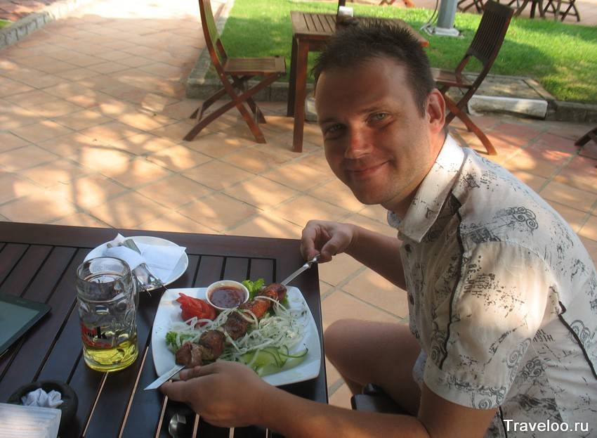 Как я уже говорила выше у пляжа Дрим Бич есть свое кафе с европейской и вьетнамской кухней. Мы обедали всегда там, никаких отравлений не было, всё очень вкусно. Можно было заказать огромную порцию шашлыка и даже суп в хлебе (как в Чехии).