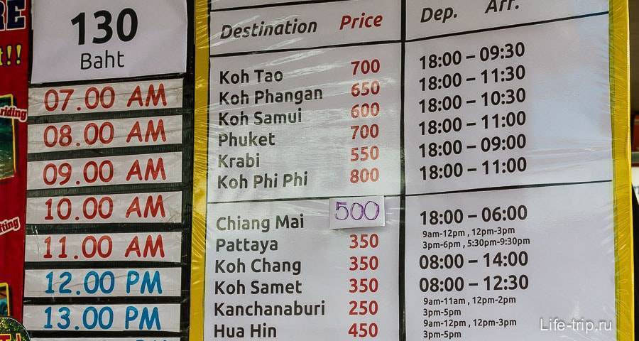 Если вы поселились на Каосан Роад, то совсем необязательно ехать на автовокзал или даже расположенный совсем неподалеку Victory Monument – достаточно зайти в любое туристическое агентство и спросить про транспорт до Хуа Хина. Правда, ИМХО, все же лучше сесть на 509 автобус и доехать до Victory Monument, ибо в туристических агентствах обычно задирают цены и часто трансферы с Каосан Роад уходят с очень сильными задержками и опозданиями.