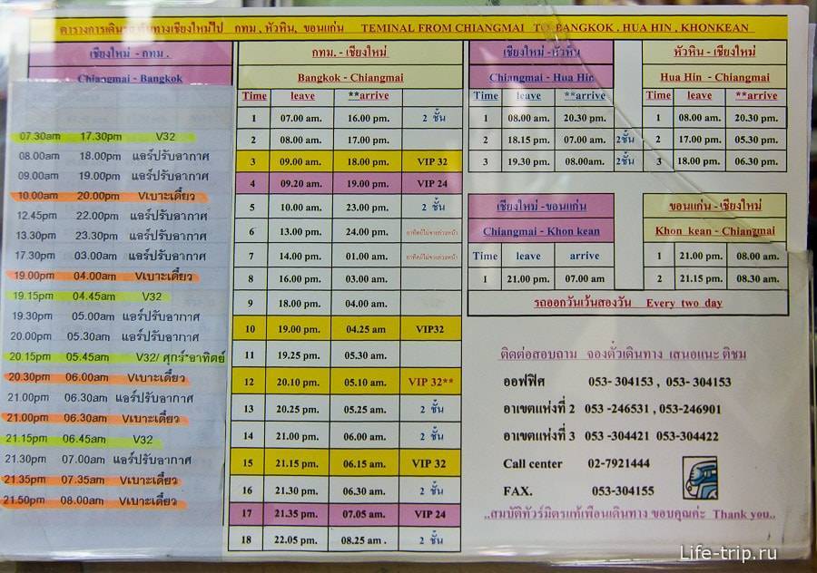 Маршрут Бангкок – Чиангмай обслуживает довольно много автобусных компаний, основными из которых являются: