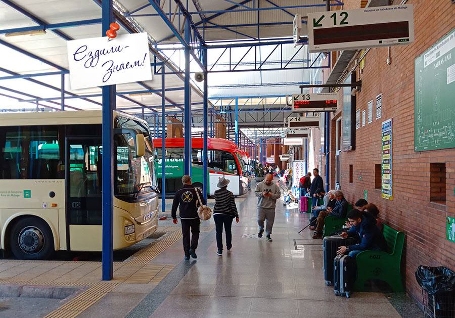 В общем случае поездку на автобусе на столь большое расстояние вряд ли можно назвать предпочтительной. Относительно удобными можно считать два вечерних рейса, позволяющих провести ночь в комфортабельном автобусе (сэкономив деньги на ночлег в отеле) и ранним утром оказаться в Малаге. Автостанция Paseo de los Tilos расположена рядом с железнодорожным вокзалом в километре от центра Малаги.
