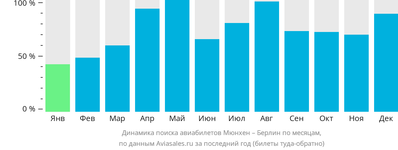 Стоимость перелета всегда зависит от времени путешествия. График позволит сравнить цены на авиабилеты из Мюнхена в Берлин, проследить динамику изменения их стоимости и найти оптимальное предложение.