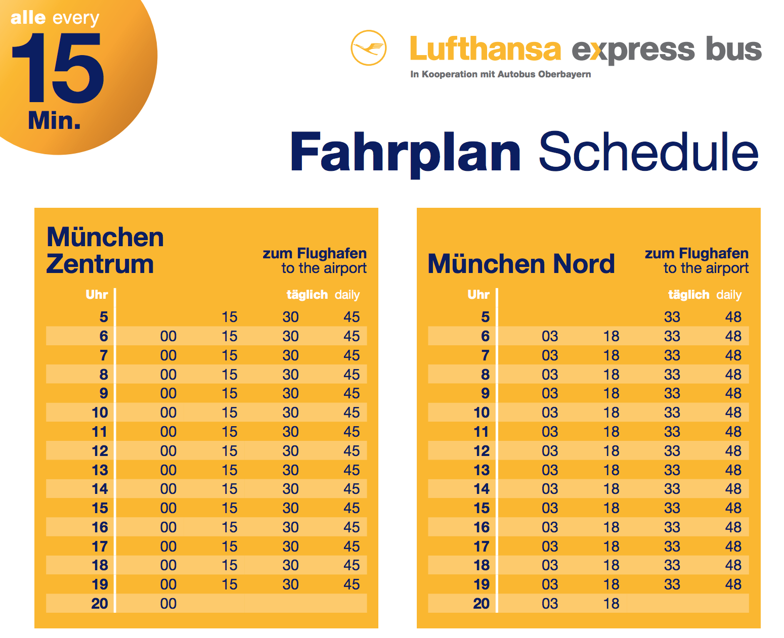 Расписание автобуса Lufthansa Airport Bus из Мюнхена