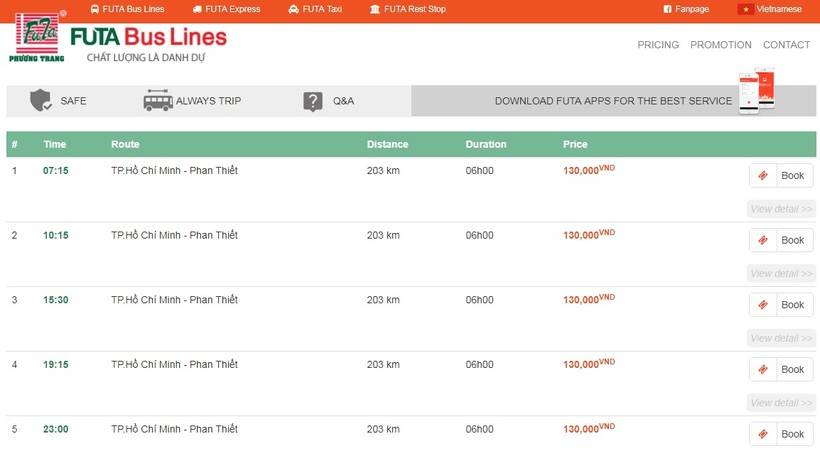 Покупка билетов во Вьетнаме – целая наука. Билеты на рейсовый автобус можно купить в кассе автовокзала, а на туристические автобусы – в офисах представительств. Адреса можно найти на сайтах, например, вот сайт , а вот . У Futa Bus Lines есть возможность купить билет на сайте. Также приобрести билеты можно в гестхаусах, тогда трансфер перевозчика заберет вас возле отеля и привезет на посадку.