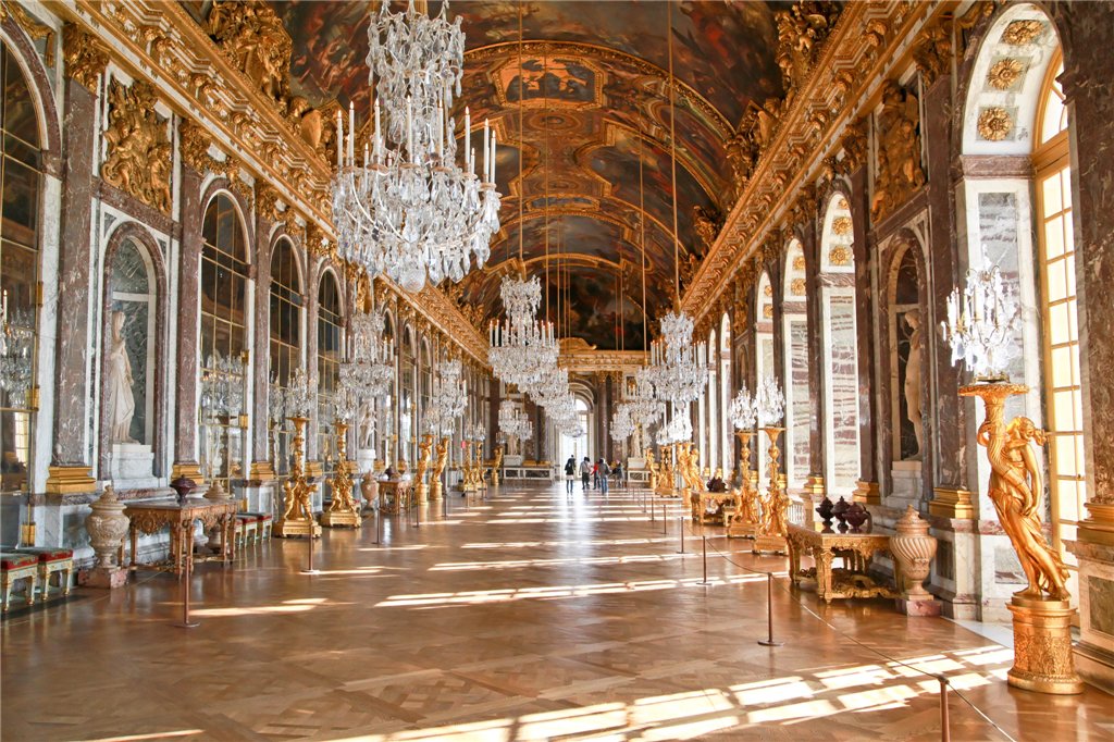 Изюминка Зеркальной комнаты в 357-и зеркалах, расположенных напротив 17 окон. Отражение создает иллюзию, что сад обступает галерею с двух сторон, а вечером в них когда-то сверкали огнями тысячи свечей. Ее украшали фигурные торшеры, канделябры, вазы из серебра в бронзовой огранке, хрустальные люстры и живые апельсиновые деревья, а стены и потолок расписаны сценами из мифологии и истории, в которых разыграны великие драмы жизни двора. Причем в роли античного героя непременно изображался сам Людовик XIV.