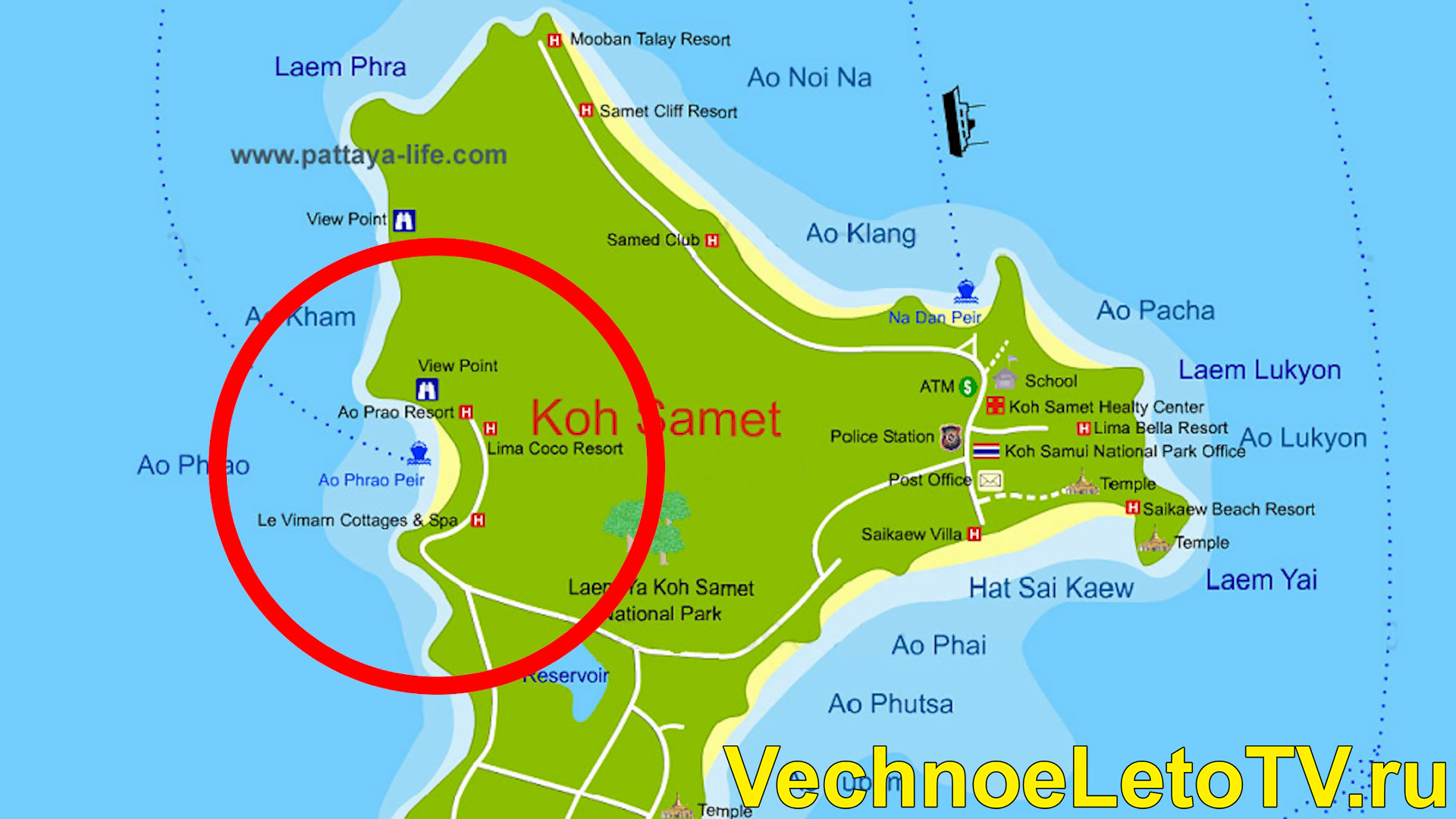 Самет находится в 6,5 км от материковой части Тайланда, сюда вы можете доплыть не только на спидботе, но и на пароме. Время в пути на пароме 30 минут, стоимость проезда 50 бат. Паромы ходят один раз в 20-40 минут.