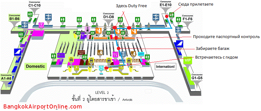 Итак, возле паспортного контроля вас будет ожидать очередь, здесь есть одно правило – не вставайте за большими группами людей, а также за теми, кто после многочасового полета источает неприятный запах. Хотя очередь и движется очень быстро, начинать свое знакомство с Таиландом с неприятных моментов не стоит. На паспортном контроле Вам необходимо будет предъявить офицеру паспорт и миграционную карточку, улыбнуться в цифровую камеру, забрать паспорт с половинкой миграционной карточки (терять ее нельзя) и после приглашения проследовать к лентам выдачи багажа. Не пользуйтесь стойкой «лимузин сервис», это очень дорогое такси. Если Вам нечего декларировать, то идем напрямик к выходу. Перед отправлением в город рекомендуется взять бесплатные карты у стойки информации, обменять деньги или снять их в банкомате. А также сразу переведите часы, разница с Москвой составляет плюс 3 часа.
